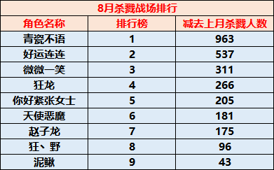 今天的主要目的是来公布咱们8月扶持月活动的排行榜名单,让我们恭喜以下玩家哟~