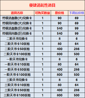 4、永久上架的秘籍直购卡道具(均为历史上架秘籍)