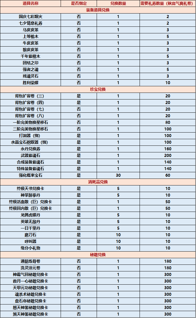 “秋高气爽礼券”兑换时间为2025年10月1日维护后-2025年10月29日维护前